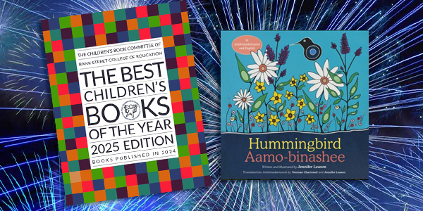 June 26, 2025 -Chosen by the Bank Street Children's Book Committee, Hummingbird / Aamo-binashee was featured in The 2025 “Best Children’s Books of the Year” list for titles published in 2024. In choosing books for the annual list, committee members consider literary quality and excellence of presentation as well as the potential emotional impact of the books on young readers. Other criteria include credibility of characterization and plot, authenticity of time and place, age suitability, positive treatment of ethnic and religious differences, and the absence of stereotypes.